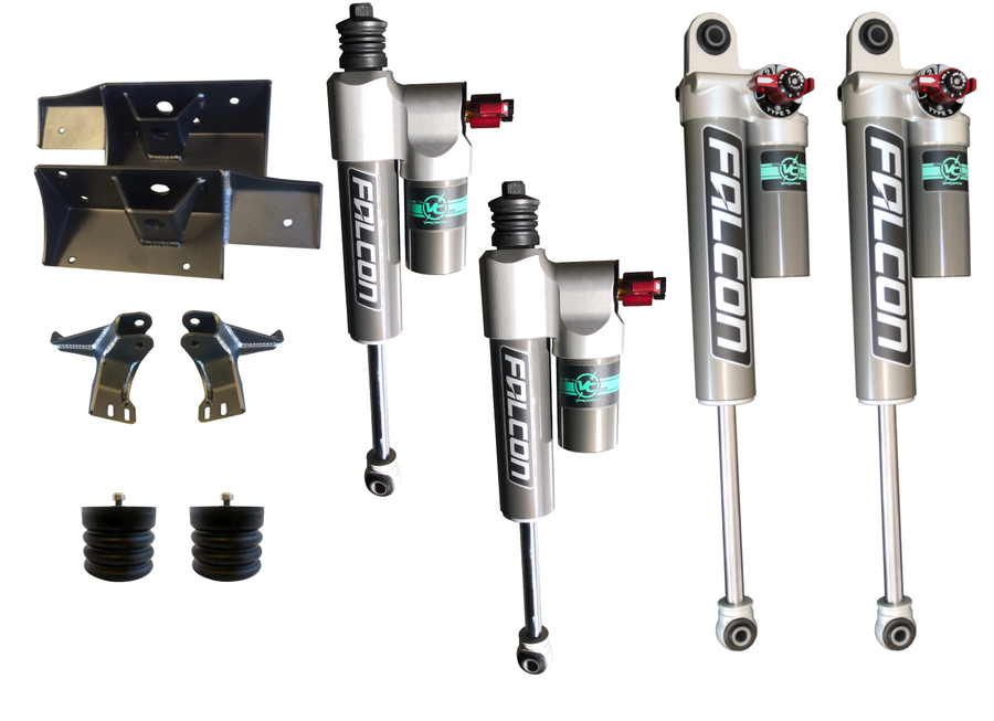 - Front Falcon 2.315" piggy back reservoir 3.3 Fast Adjust Shocks